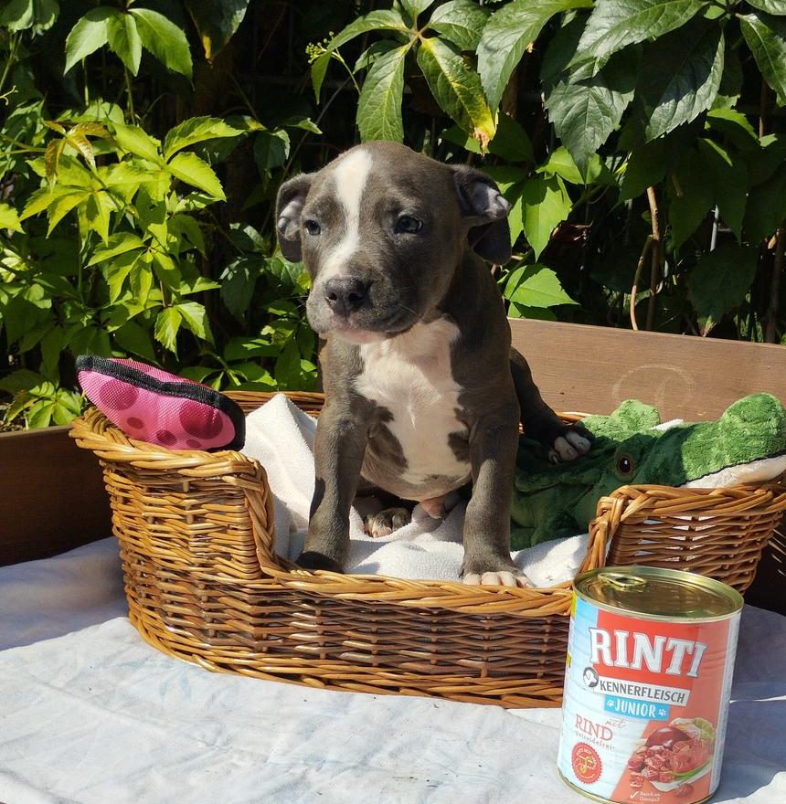 Stymie wurde zusammen mit seinen 9 Geschwistern im Tierheim geboren, denn ihre Mama wurde leider tragend ausgesetzt. Ihre Mama Lizzy ist ein Mischling aus Cane Corso, Dogo Canario und Dobermann und sehr groß, über den Papa ist nichts…